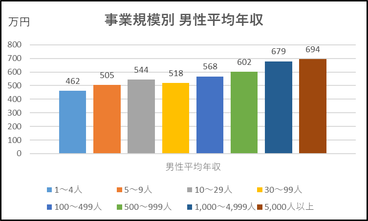 企業規模が大きい程、高年収となる傾向にあることがわかります。