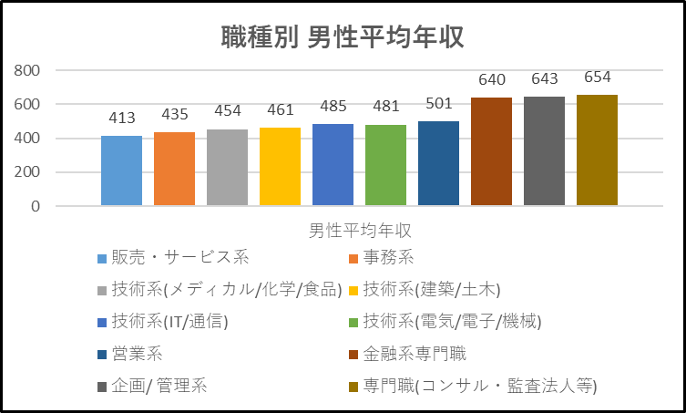 金融系の専門職や、企画/管理系の高収入であることがわかります。